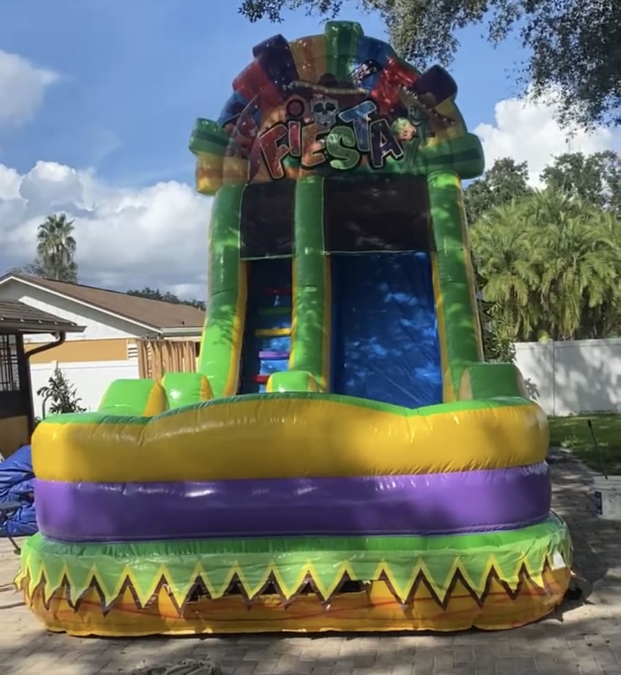 Are you ready to get your slide on?! You can definately do it with this 18 foot tall Fiesta slide!! Experiance this 12ft high drop from above and see who can make the biggest splash of the party into the pool!! Good for all ages with the block style steps and hand loops to climb with.