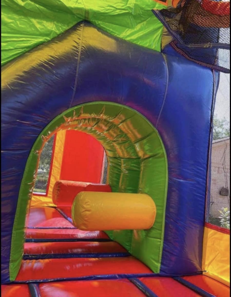 Nothing says fun times at an event or party like the traditional bounce house. Kids love them and parents do too and while a traditional unit is a really great time, nothing in our lineup can offer quite what the 5-Part Multi-Play Rainbow Inflatable Bounce House and Slide Combo can. This special unit is an all-in-one playhouse that has everything kids could want for a really great time. The 5-Part Multi-Play Rainbow Inflatable Bounce House and Slide Combo has all the fun of a traditional bounce house, combined with fun obstacles to jump or crawl through, a basketball hoop and a slide, all packed within the same inflatable bounce house!