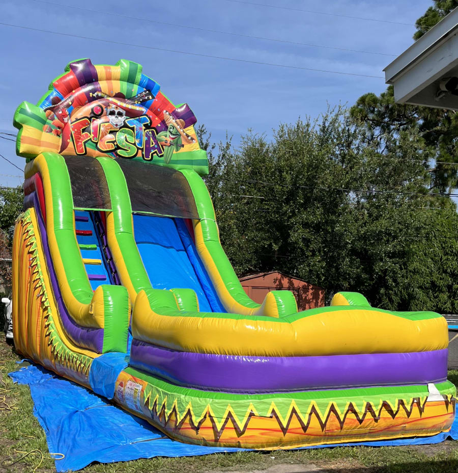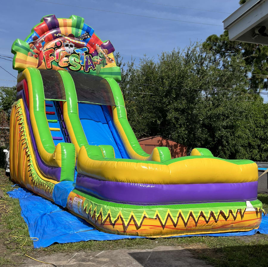 Are you ready to get your slide on?! You can definately do it with this 18 foot tall Fiesta slide!! Experiance this 12ft high drop from above and see who can make the biggest splash of the party into the pool!! Good for all ages with the block style steps and hand loops to climb with.